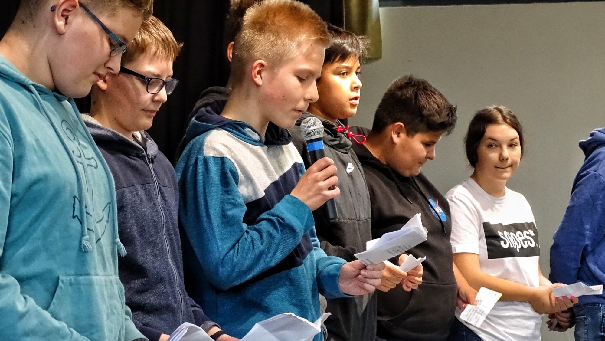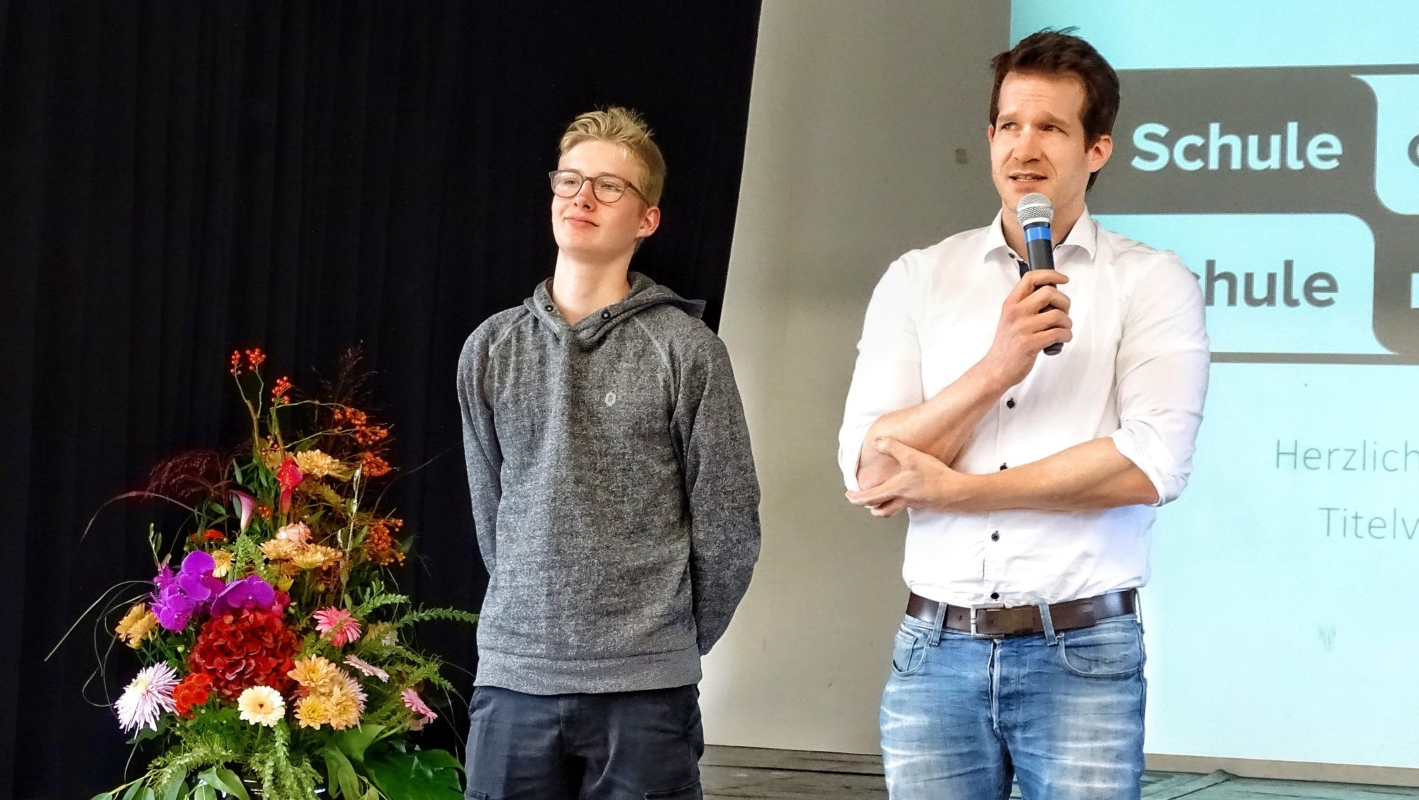 Die Moderation übernahm Lehrer und Medienbeauftragter Fatih Özbay. Unterstützt wurde er durch SV-Lehrer Michael Sigge und den Schülersprecher der Gesamtschule. Auch Kreisdirektor Klaus Schumacher hatte es sich nicht nehmen lassen, an der kleinen Feierstunde teilzunehmen. Er ist u.a. für die Abteilungen Schule/Kultur und Bildung/Integration zuständig.