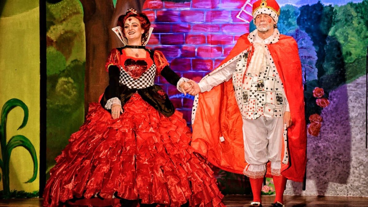 Ein grandioses Bühnenbild mit acht verschiedenen wechselnden Hintergrundmotiven und die aufwändig genähten Kostüme, die Schauspielerin Sylvia Tischer in sechswöchiger liebevoller Detailarbeit kreiert hat, verzaubern den Zuschauer im Nu. In der Rolle der Herzdame hält Sylvia Tischer die Fäden des gesamten Wunderlandes in der Hand.