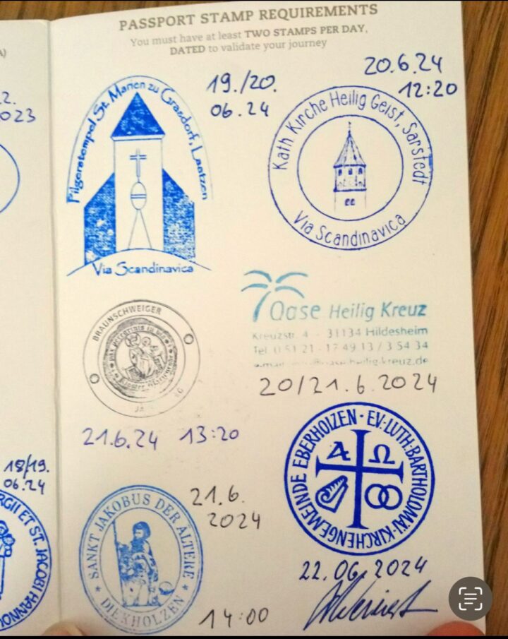 Trotz schwerer Rucksäcke und müder Füße war die Freude am gemeinsamen Pilgern groß. Besonders wichtigsind ihnen die Pilgerstempel im Pilgerpass. Am Abend war der Kopf frei, die Gedanken ruhig – wie es eben oft beim Pilgern ist.