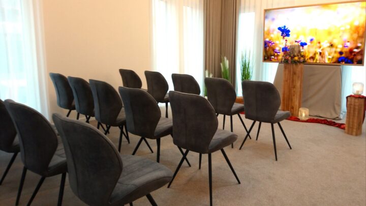 Zu sehen waren unter anderem moderne Abschiedsräume für individuelle letzte Begegnungen, eine Trauerhalle mit Platz für 20 bis 25 Personen – bewusst so gestaltet, dass eine würdevolle Atmosphäre entsteht. Alles ist ebenerdig angelegt: die technischen Bereiche, ein Raum mit Versorgungstisch, ein Kühlraum, eine Garage für den Bestattungswagen und ein barrierefreies WC.