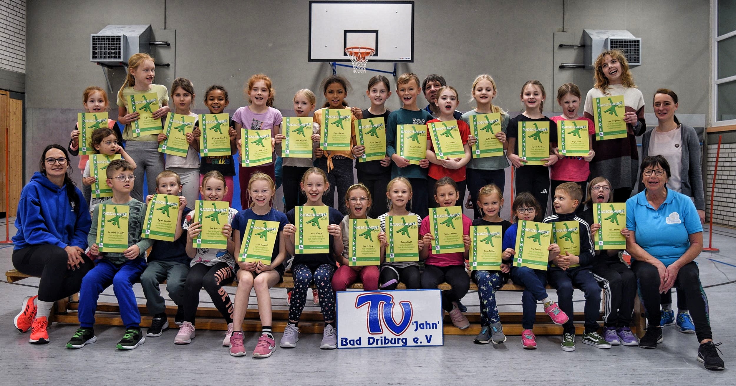 Ein besonderer Höhepunkt für die jüngsten Mitglieder der Turnabteilung war der Radschlagtest 2025. Insgesamt 27 Turnerinnen und Turner im Alter bis 8 Jahre stellten sich der Herausforderung und bestanden den Test nach wochenlanger intensiver Vorbereitung mit Bravour. Mit jeder Trainingseinheit wuchs die Spannung, ob alle Kinder den Radschlag sicher beherrschen würden – umso größer war schließlich die Freude, als alle Teilnehmenden erfolgreich waren. In einer kleinen feierlichen Zeremonie erhielten die stolzen Kinder eine Urkunde, die sie mit sichtlichem Stolz entgegennahmen. Der Erfolg ist nicht nur ein Beweis für Talent und Ausdauer der Kinder, sondern auch für das engagierte und motivierende Wirken der Übungsleiterinnen und Übungsleiter.