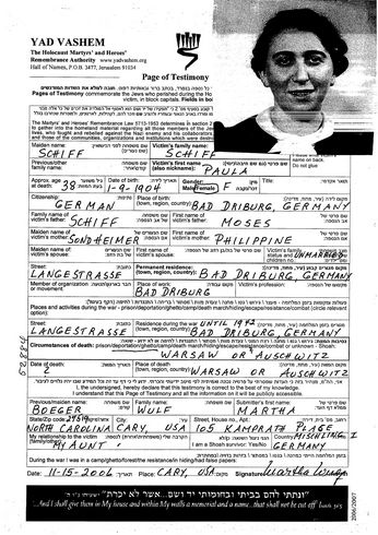 ²Yad Vashem, Page of Testimony: Paula Schiff: https://collections.yadvashem.org/en/names/