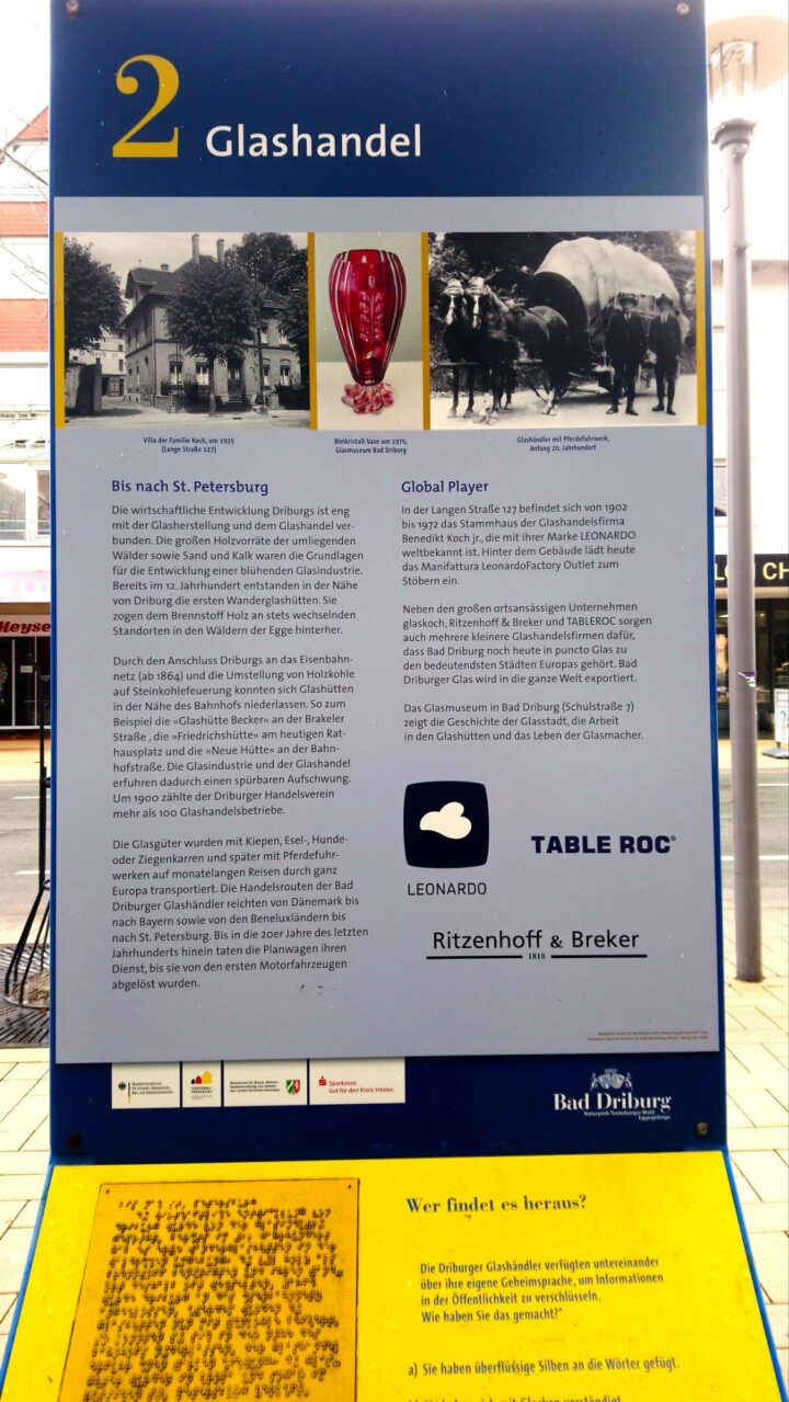 Bad Driburg. Informationstafeln geben spannende Einblicke in die Geschichte unserer Stadt. In loser Folge stellen wir sie hier vor. Viele Bad Driburger gehen täglich daran vorbei – ein kurzer Halt lohnt sich jedoch. Die gelben Tafeln stehen im Stadtzentrum. Sie laden zu einem besonderen Rundgang ein: Jede Station widmet sich einem eigenen Thema. Die Tafeln sind barrierearm und mit Brailleschrift versehen. Eine Quizfrage mit Antwort macht den Rundgang informativ und unterhaltsam.