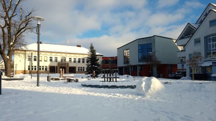 Das Kino konnte schon zum Jahreswechsel 1939/40 fertiggestellt werden. Das Rathaus hingegen blieb bis Kriegsende ein Rohbau und war erst 1947 bezugsfertig. Für die Verbreitung der nationalsozialistischen Propaganda war ein Kino wichtiger als ein Verwaltungsgebäude. 1975 wurde im Zuge der kommunalen Neugliederung ein Anbau an das Rathaus erforderlich. 1978 waren die Bauarbeiten abgeschlossen.