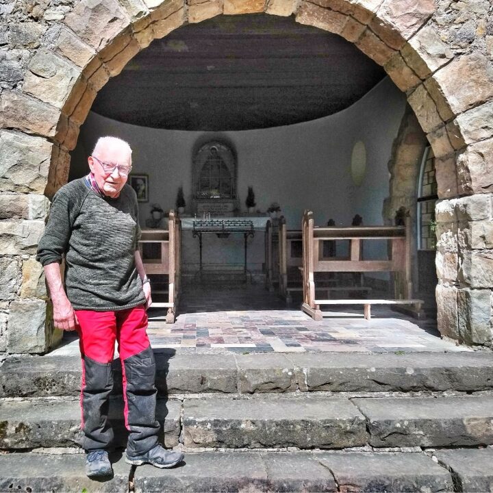 Schon bei der Einweihung im Jahr 1953 war er dabei: Damals kam er als Achtjähriger mit seinem Großvater aus Alhausen zu Fuß über den Rosenberg zur Kapelle. Seine Lebensgeschichte ist eng mit dieser frühen Zeit verbunden – seine Mutter starb bei seiner Geburt, und so wuchs er bei seinen Großeltern auf. Vielleicht erklärt gerade das auch seine tiefe Verbundenheit zu diesem Ort der Stille und Geborgenheit.
