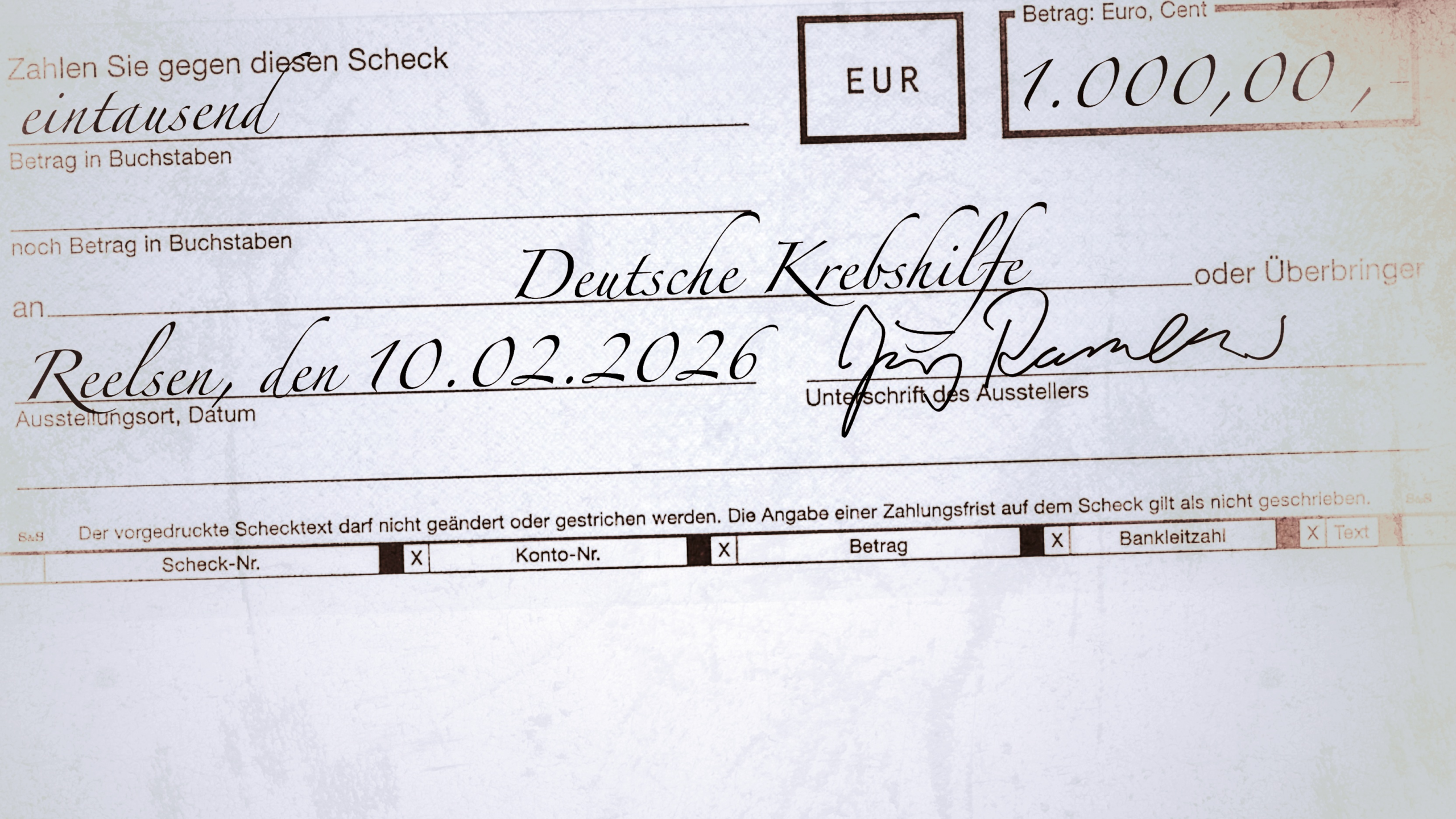 Blaskapelle Reelsen spendet 1.000 Euro an die Deutsche Krebshilfe