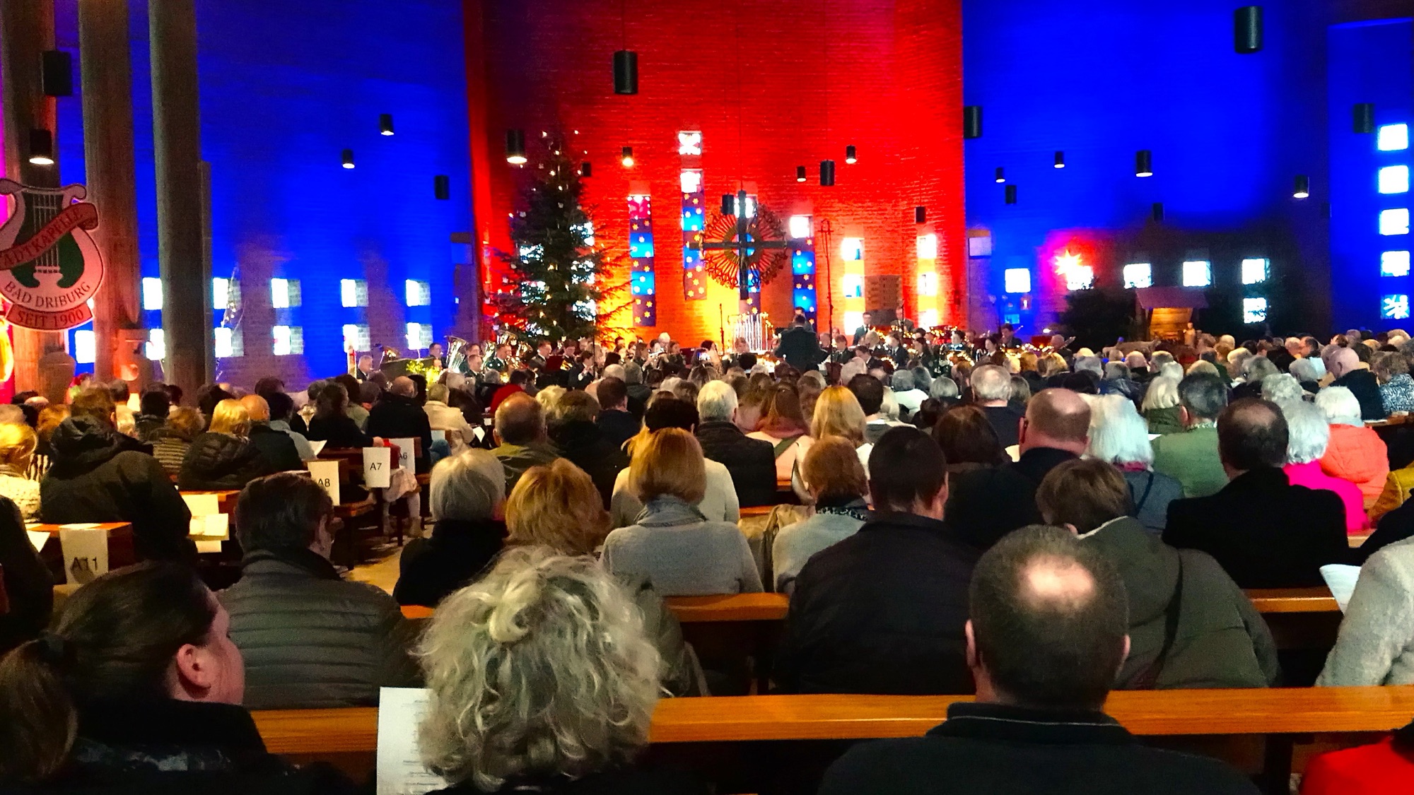 Doris Dietrich Bad Driburg. Am 4. Advent lud die Stadtkapelle Bad Driburg wieder zu ihrem traditionellen Weihnachtskonzert ein. Die Kirche „Zum verklärten Christus“ empfing die Besucher mit warmem Rot- und Blauschimmer, die den Kirchenraum in eine zauberhafte Lichtstimmung versetzte. Dieses Farbenspiel unterstrich den Titel des Konzertes „Lichterglanz und Schneegestöber“. Über 400 Gäste folgten der Einladung. … Weiterlesen